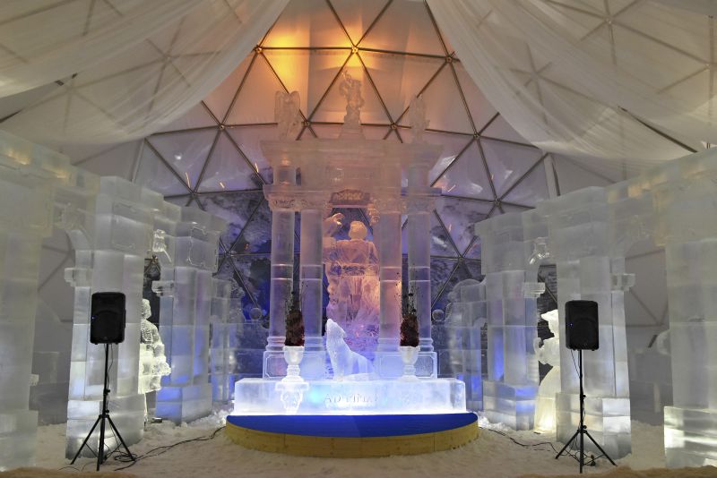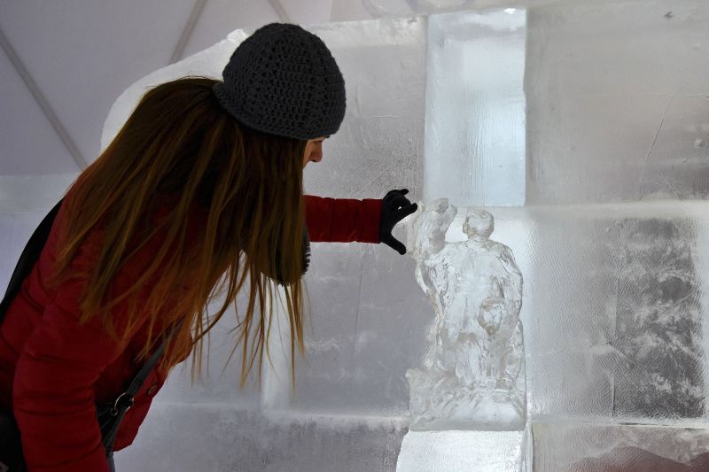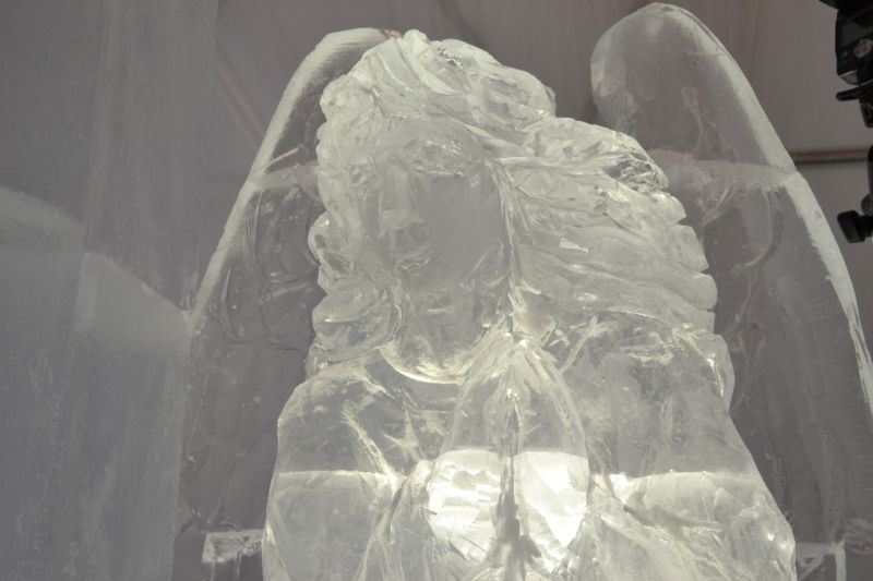 Az idei jégtemplomnak saját védőszentje is van, a jégből készült műalkotást