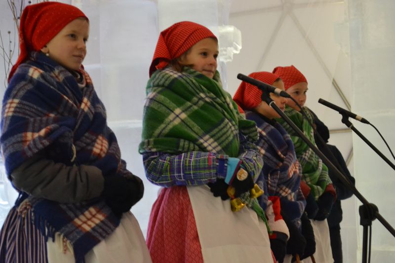 jégtemplom színpadán különböző országokból érkezett gyermek folklórcsoportok