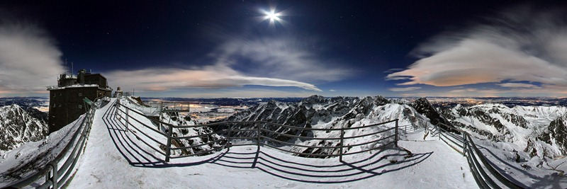 kilátással a Magas-Tátra csúcsaira és az éjjeli égboltra. Kedvező