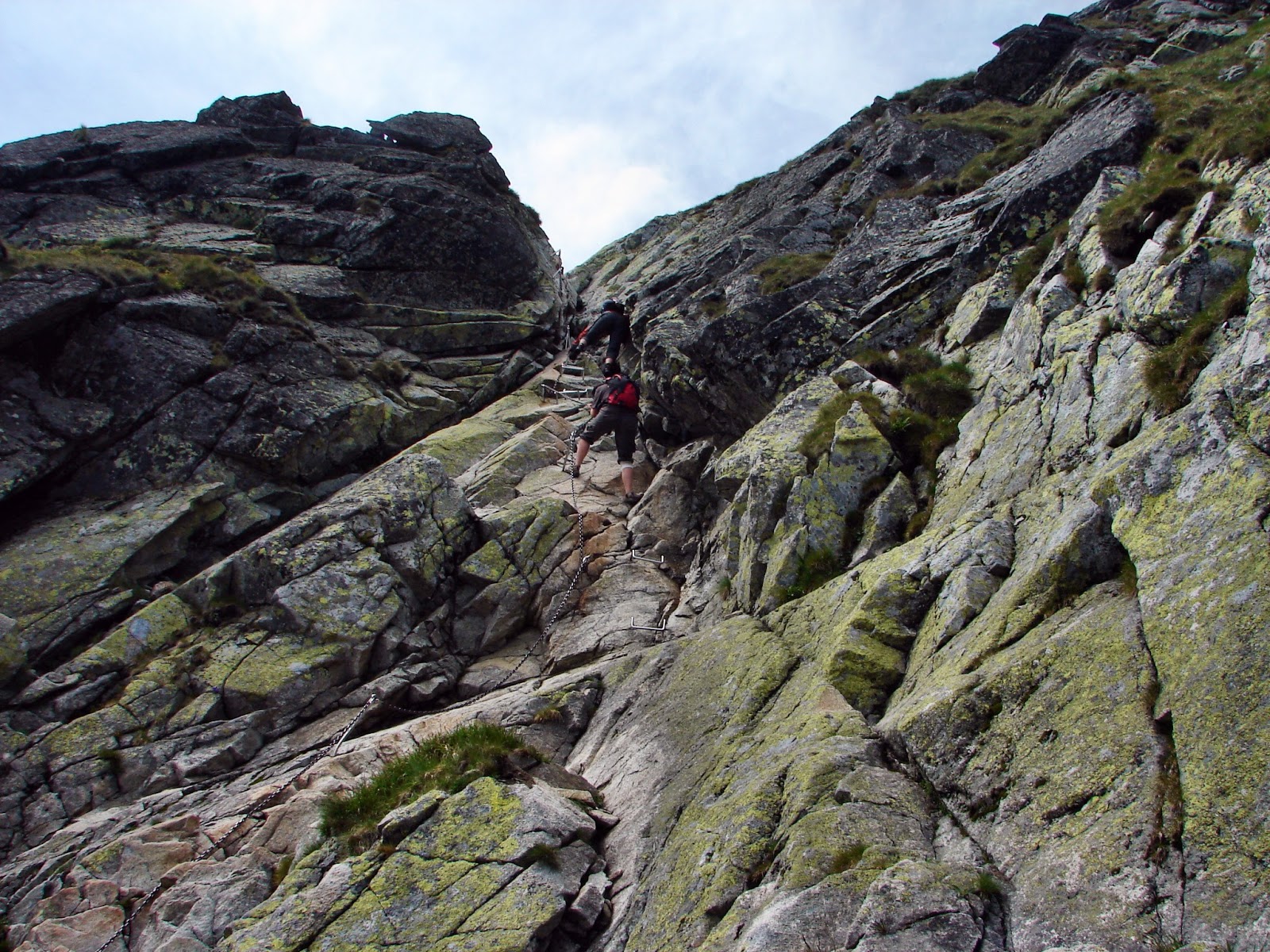 indulás miatt a csúcson csak rövid pihenőt tartottunk, és ismét láncok mellett