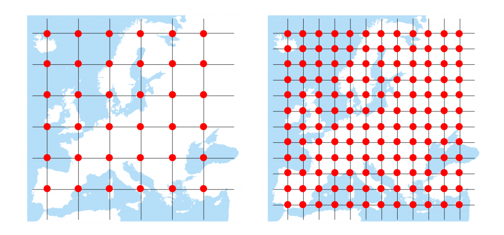 lehetőség lenne előre jelezni az időjárást. Tény, hogy minél sűrűbb a rács,