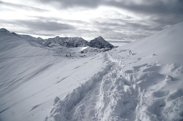 is vastag hó borítja, melyet a szél folyamatosan visszafúj a kijárt nyomokba,