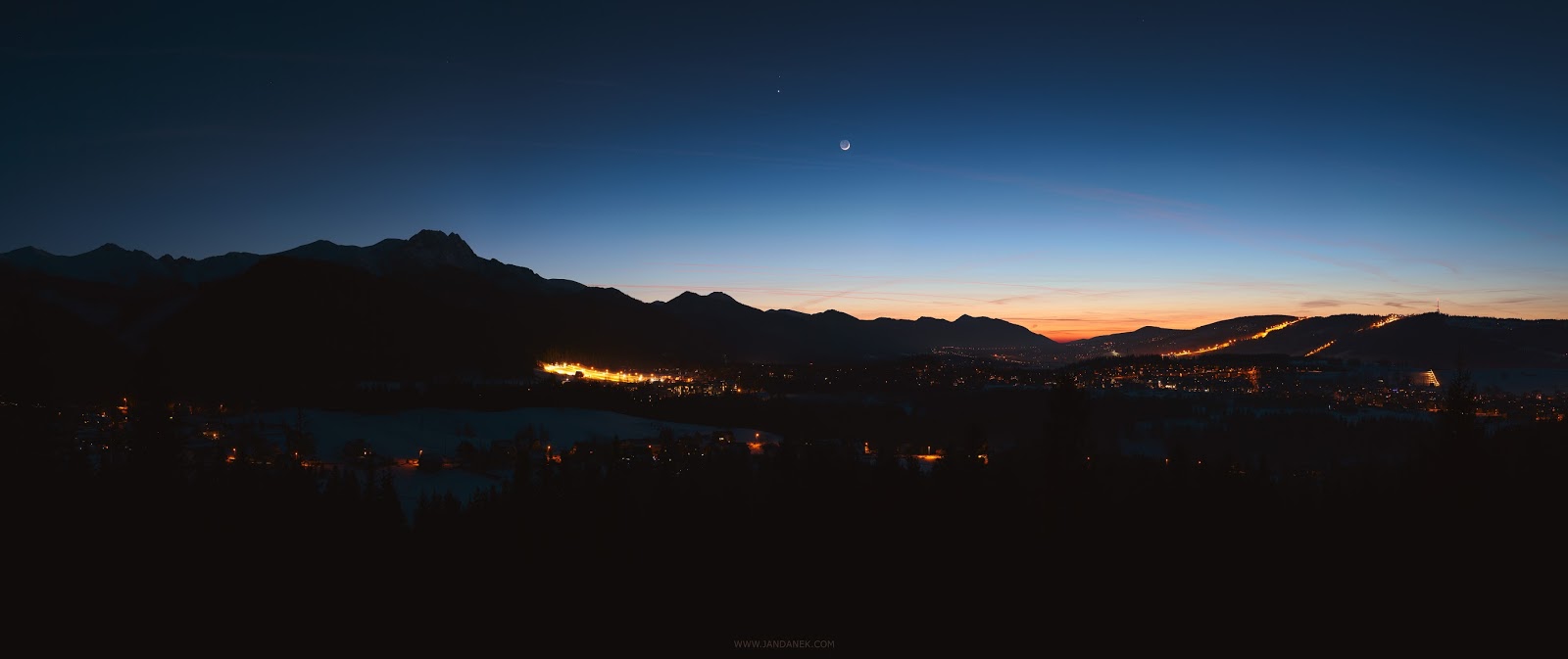 Vénusz (a fényes pont a Hold bal oldalán), valamint a Mars (a Vénusz felett).