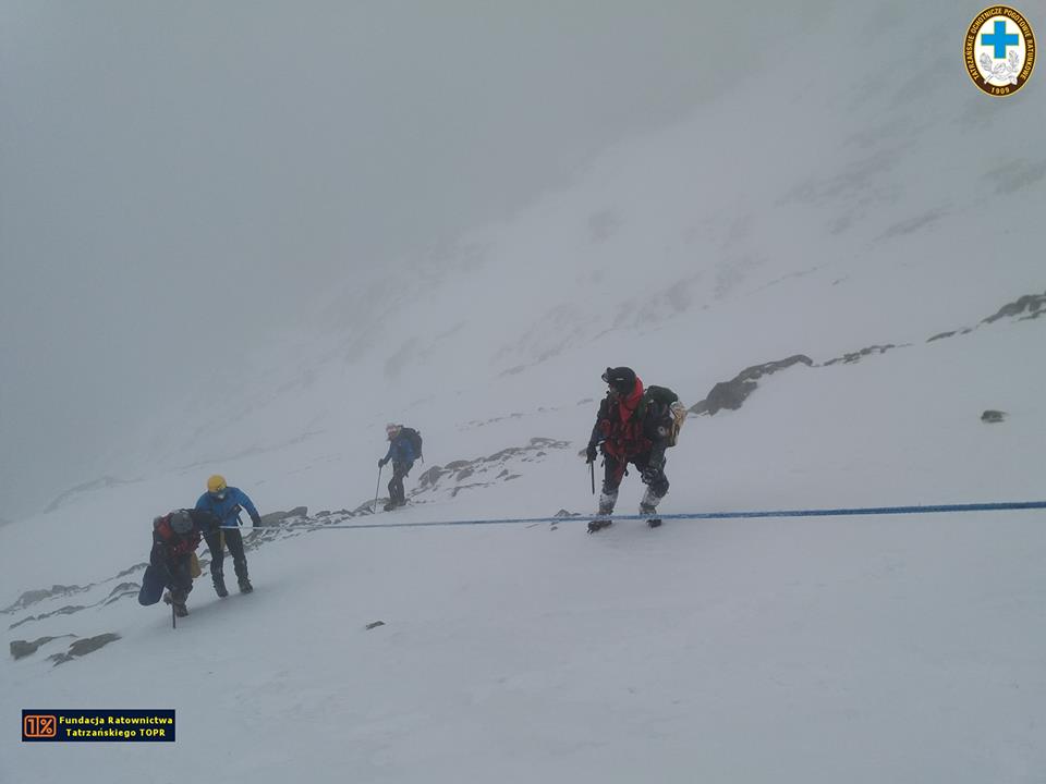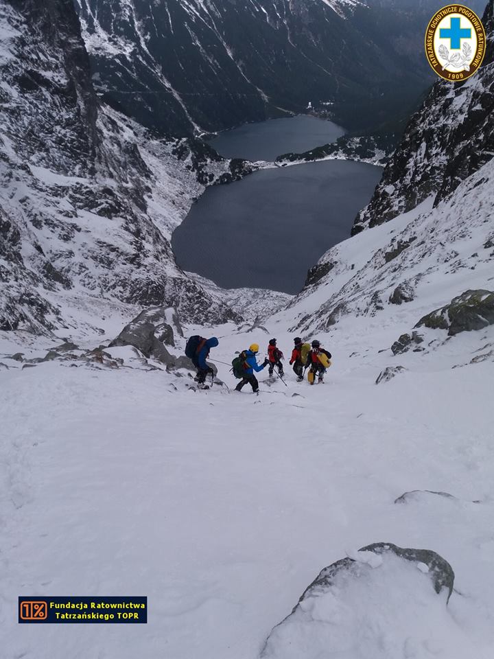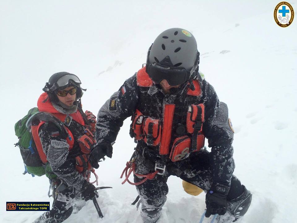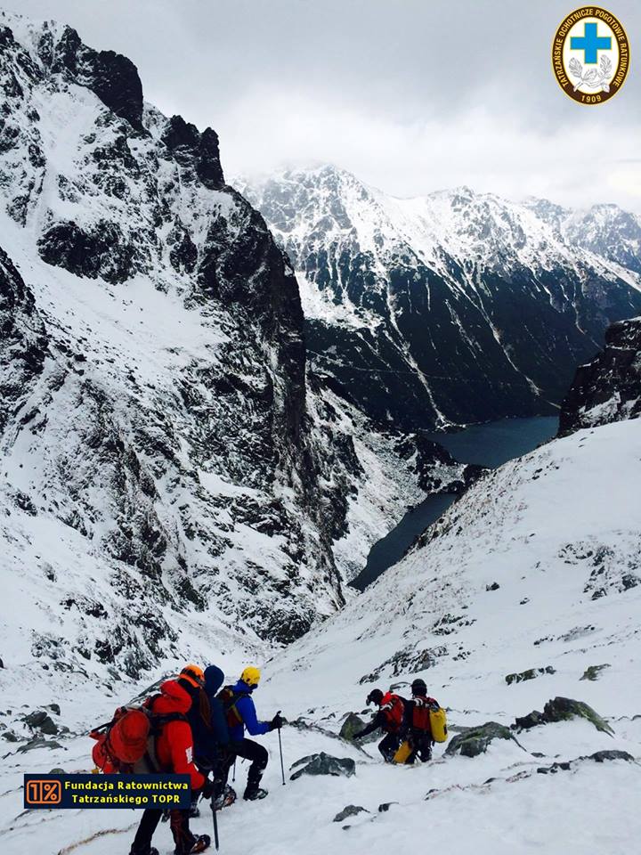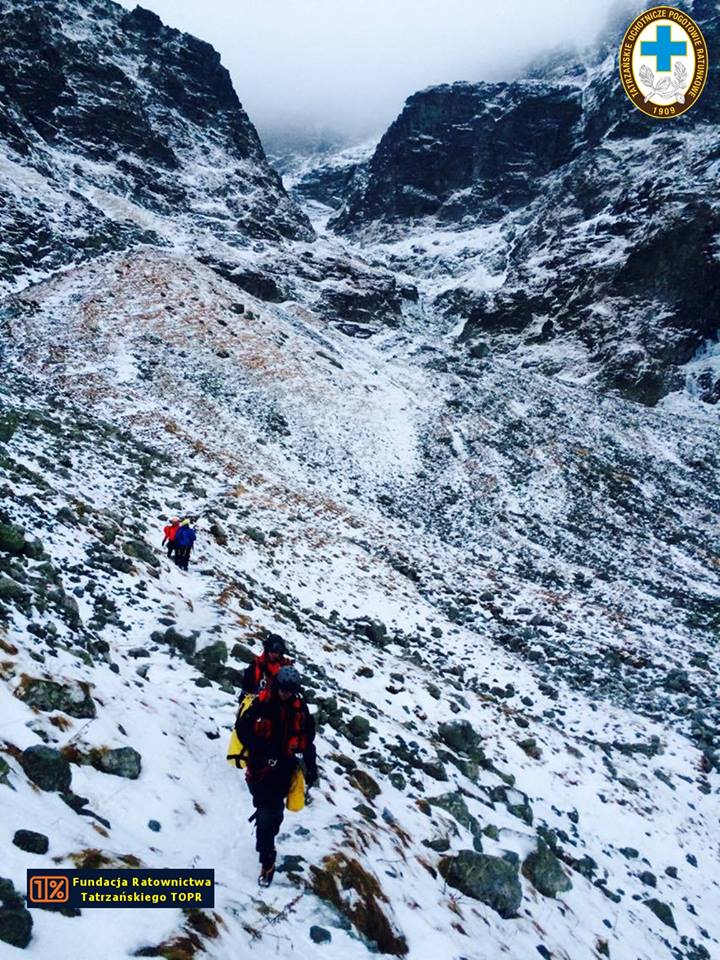 Tengerszem-csúcs (Rysy) felé vezető úton. A bázisról azonnal elindult a mentőhelikoptert,