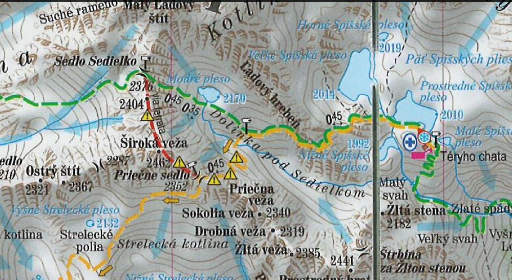 Vörös-torony-hágót (Priečne sedlo) és a Kis-Nyereg-hágót (Sedlo Sedleiko) a