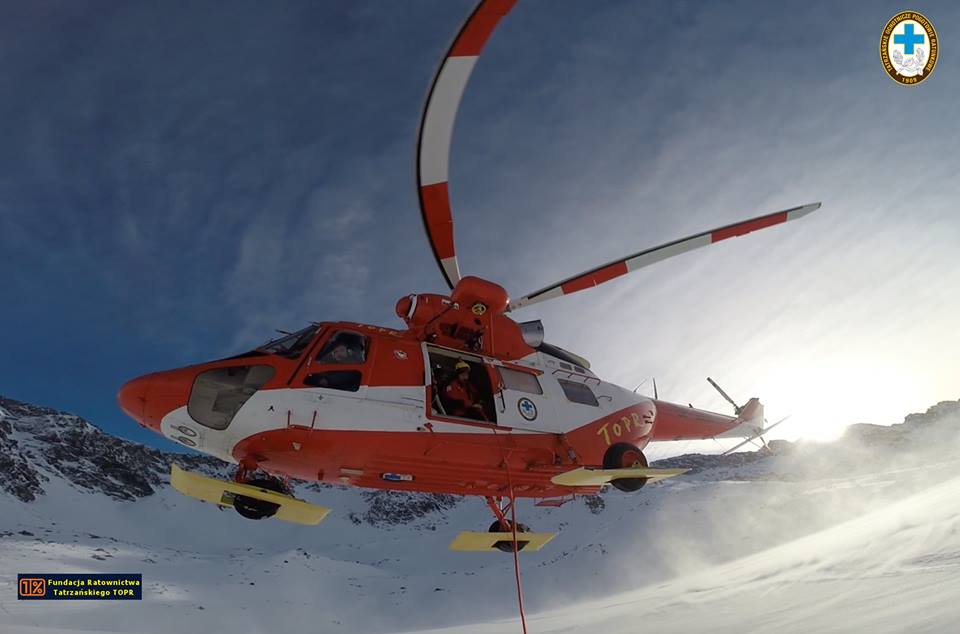 a hegyimentők helikopterrel a megérkeztek a baleset helyszínére, a turistát