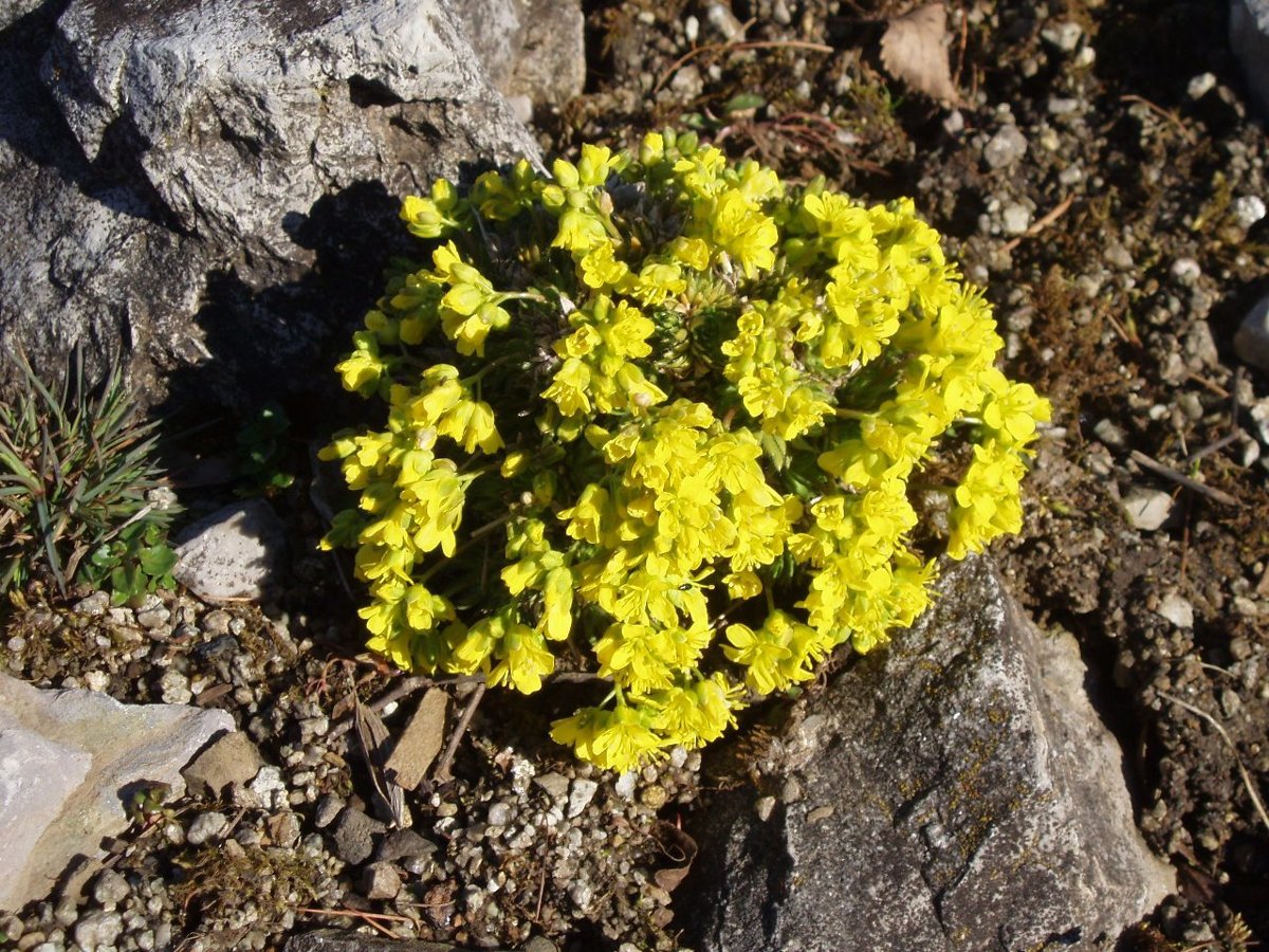 kora tavasszal virágzik, a havasi daravirág (Draba aizoides). „Az elegendő