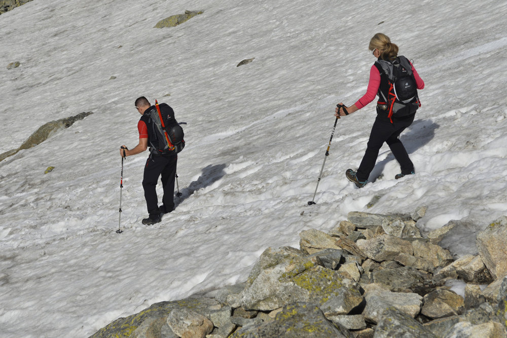 alatti meredek szakaszokon – különösen júniusban – a nyári hómezők miatt a