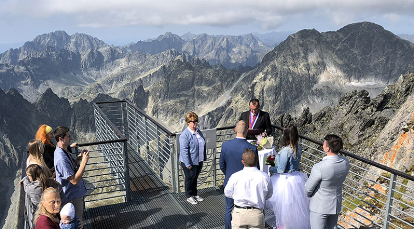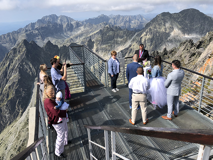 Lomnici-csúcson (Lomnický štít, 2634 m) megrendezett esküvői ceremóniáról,