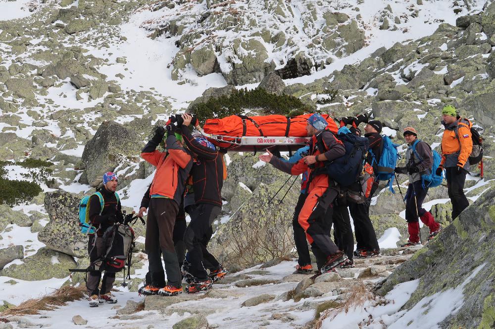 hegyimentők csomagolták be, és vitték le a Hunfalvy-völgyi menedékházhoz (Chata