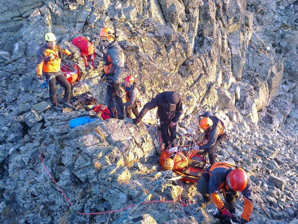 kötéltechnika segítségével felvitték őt a gerincre, a kedvezőtlen időjárási körülmények