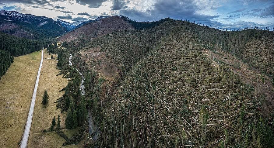 vihar során elpusztult mintegy 2,8 millió m3 fa, miközben Szlovákia