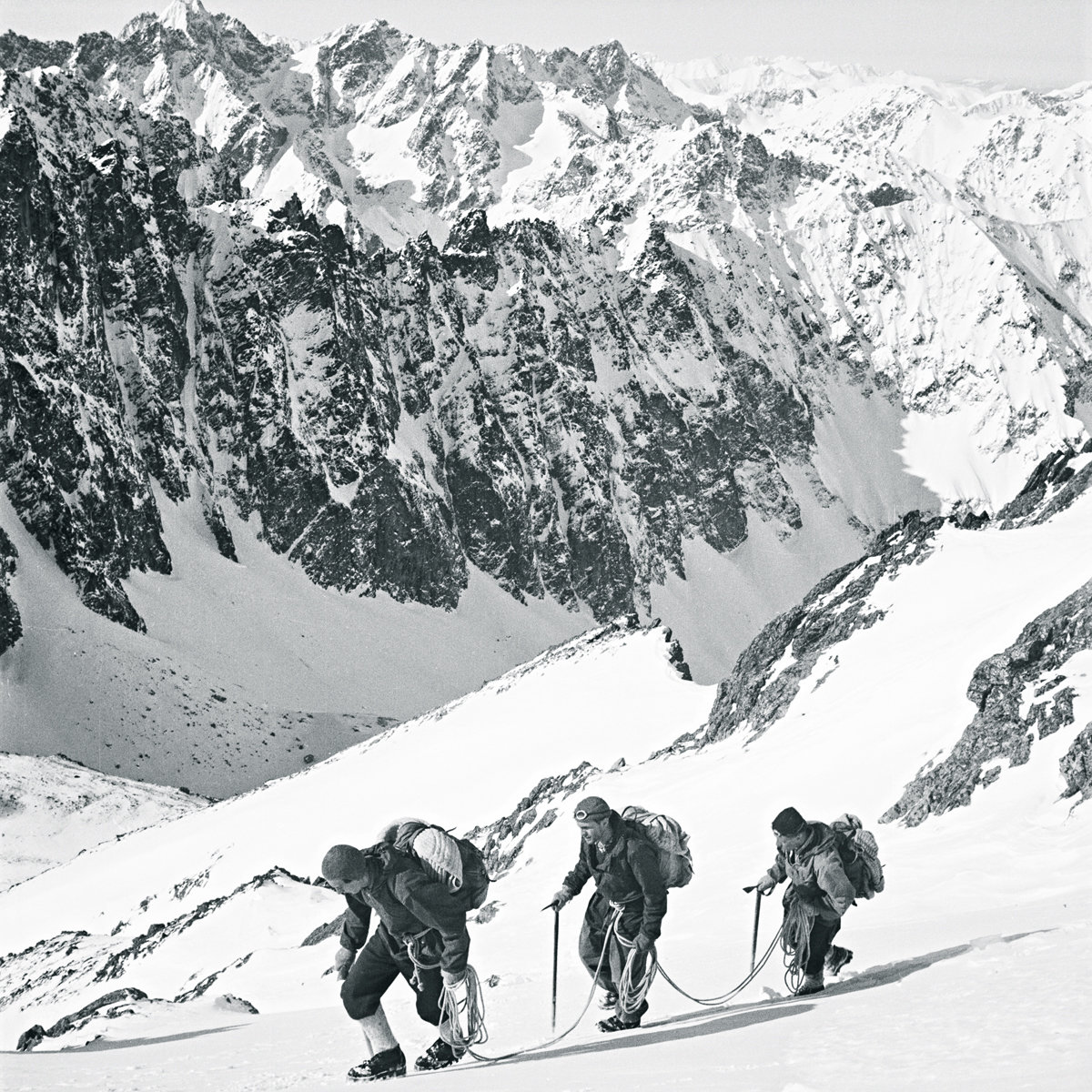 Középső-Menguszfalvi-csúcs déli oldalán. A hátizsákok tömege kezdetben 20 kg