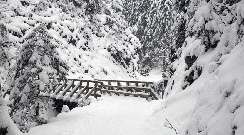 lavinaveszély esetén a tóhoz vezető út felső részén történő áthaladást ajánlott
