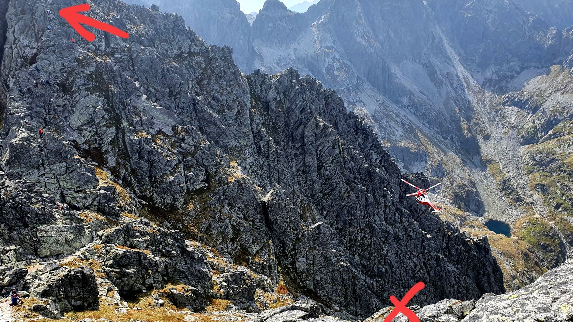 Gránátok gerincéről. A férfi kb. 200 m-t zuhant a Gąsienica-Fekete-tó (Czarny