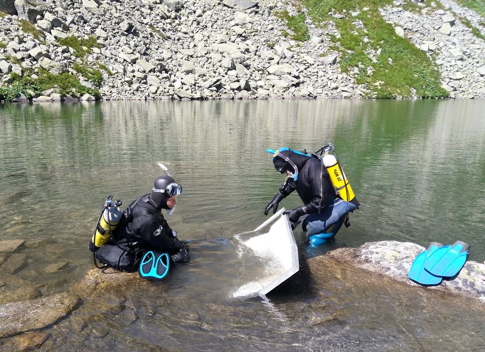 búvárok ez alkalommal egyedileg tisztították a magashegyi tavakat.