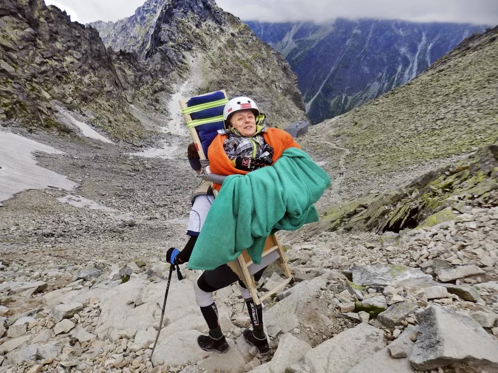 A fogyatékkal élő Michalt (40 kg + a 7 kg-os speciális hordkeret) felvitte a Tengerszem-csúcsra (Rysy, 2503 m).