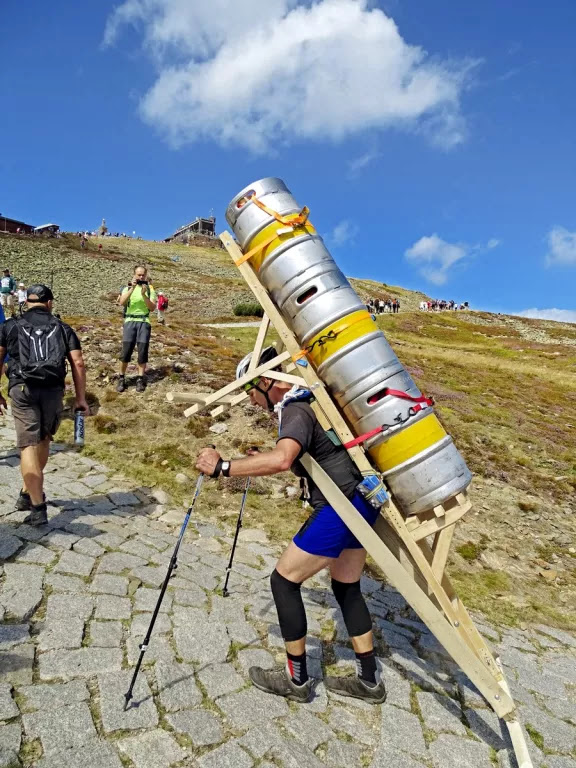 211 kg-ot (3x50 l-es hordó sör + a hordkeret) vitt fel Csehország legmagasabb csúcsára, a Snežkára (1603 m) a lengyel oldalról.
