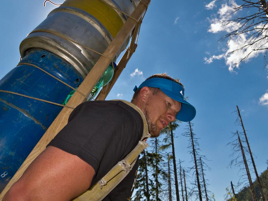 nem mindennapos kikapcsolódást jelentő teherhordás nehézségeivel a hegykehez