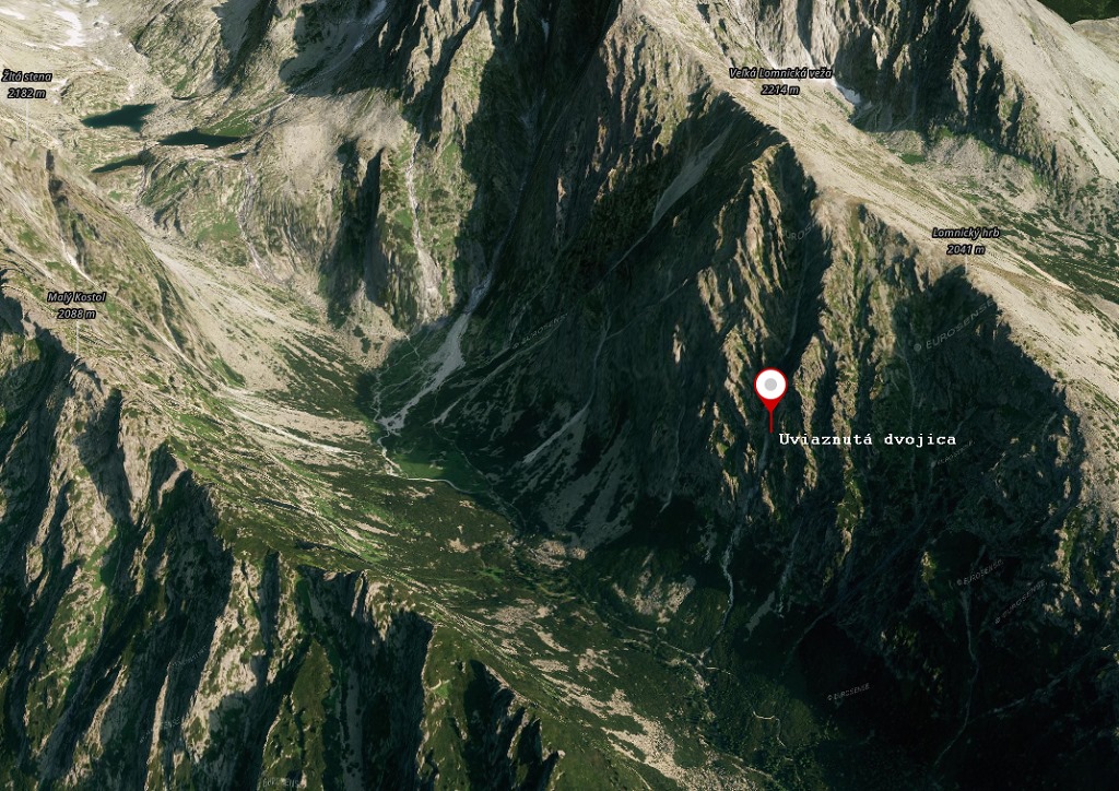 Studená dolina) oldalában lévő ún. Szén-vízesés (Uhoľný vodopád) feletti kuloárba,