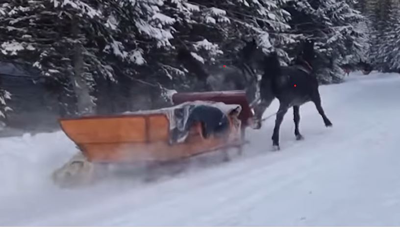 a Halastóhoz (Morskie Oko) felé vezető úton, ahol egy lovasszán elé befogott