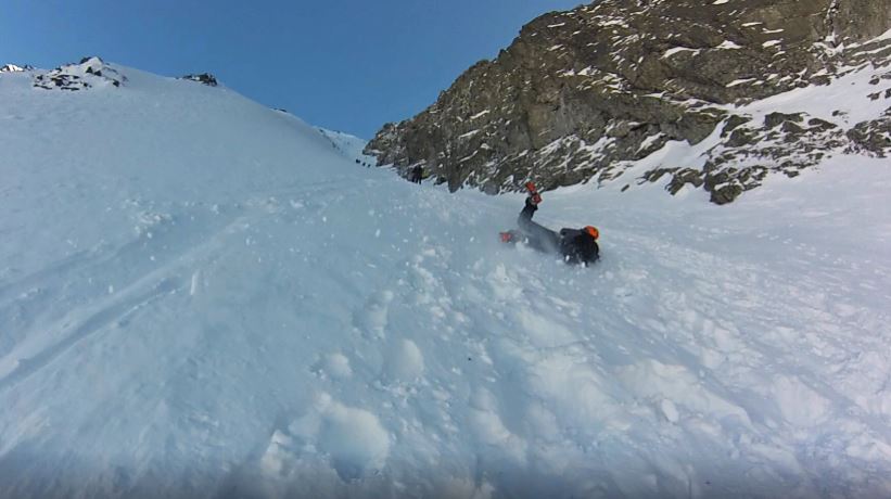 (bukfencezés, lábsérülések, akár törés is). A jégcsákány tölti be a fékező szerepet,