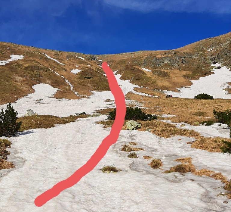 között, a Jamniki-völgy (Jamnícka dolina) irányában. A maradványokat kötéltechnika