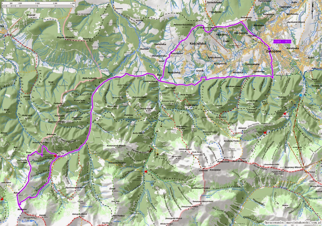 Itt megfordulnak, majd a Felső-Chochołowi-völgyben vezető zöld jelzésen jutnak vissza a menedékházhoz, majd a felfelé már megtett úton Kiry városrészbe. Onnan a fekete jelzésű Alsó erdei úton elfutnak a Fehér-völgy torkolatáig, ahonnan a Grunwaldzką utcán irány a verseny célja, amely szintén a Városi Parkban található.