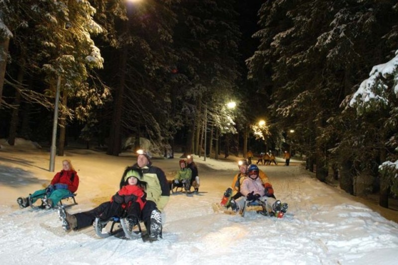 Minden kedden, pénteken és szombaton, 19:00 és 21:00 óra között esti szánkózásra is lehetőség nyílik, amikor a vállalkozó kedvűek az egyedülálló élményt nyújtó, kivilágított szánkópályán csúszhatnak le. Az éjszakai szánkózásra a jegyek árusítása 18:30-kor kezdődik, de a pálya üzemeltetői azt javasolják az érdeklődőknek, hogy már korábban, akár 18 órakor is érkezhetnek, hogy este 7 órakor elindulhassanak az első csúszásra.