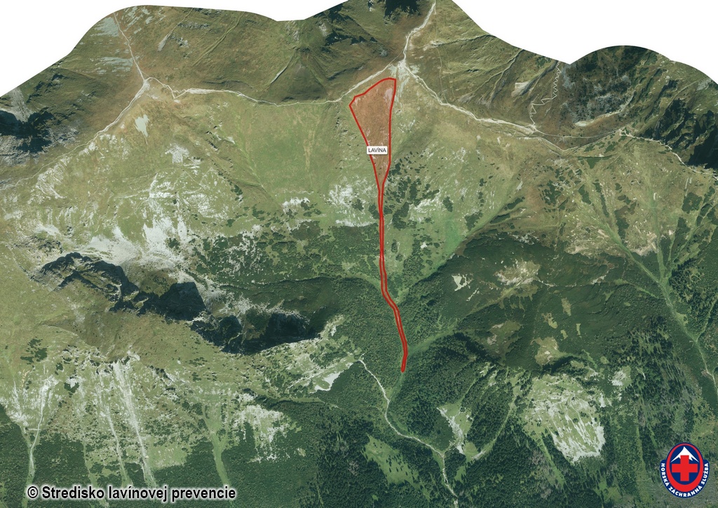 A kialakuló lavina mindhárom síalpinistát magával sodorta, a nagyon meredek lejtőn hatalmas sebességre gyorsult, és csak a Jávor-vályú (Javorové žľab) alsó, sekély részén, 1530-1390 m tengerszint feletti magasságban kezdett felhalmozódni üledék formájában. A lerakódás teljes hossza elérte a 420 m-t, szélessége 15 m, átlagos vastagsága 1,5 m, legnagyobb vastagsága kb. 3 m. A lavina teljes hossza a vízszintes síkban elérte a 1060 m-t, a felszínen 1450 m-t!!!