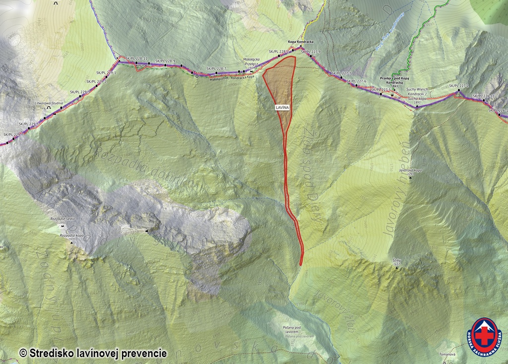 2021. február 13-án késő este (21 óra magasságában) a lengyel kollégáiktól érkezett a bejelentés a Hegyi Mentőszolgálat (HZS) ügyeletére arról, hogy a nap folyamán valószínűleg lavina szakadt le a Konrád-púp (Kopa Kondracka) déli, szlovák oldalán, amely három lengyel síalpinistát sodort magával. Egyiküknek sikerült kiásnia magát, aki a lengyel hegyimentőktől (TOPR) próbált segítséget kérni, akik a helyszín nem megfelelő lefedettsége miatt telefonon nem tudtak kapcsolatba lépni a bejelentővel. A bejelentést követően a HZS hivatásos és önkéntes hegyimentői, a lavina-megelőzési központ munkatársai mentőkutyák kíséretében indultak a bejelentő által megadott helyszínre. Ahol lehetőség volt rá, motoros szánokon és síléceken igyekeztek arra a helyre, amelynek a bejelentő megadta a GPS koordinátáit, ott azonban senkit sem találtak. A lavinamezőt átkutatva éjjel 1 óra körül megtaláltak két síalpinistát, sajnos már életjelek nélkül. Az elhunytak kb. 12 órán át voltak a hó alatt, kb. 50-80 cm mélységben (mindkettőjük lavinakeresője be volt kapcsolva, sőt, a férfi lavinamentő hátizsákot viselt előkészített kioldózsinórral…).