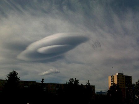 Talán egy másik galaxis lakói látogattak el Poprádra? Nem kell túl nagy képzelőerő ahhoz, hogy a földönkívülieknek tulajdonított repülő alkalmatosságot véljünk felfedezni ezen a képen, hiszen a poprádi lakótelep felett lebegő különleges formájú felhő a megszólalásig hasonlít az idegenek által használt repülő csészealjakhoz.