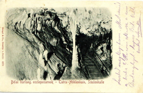Az alábbi, 130 évvel ezelőtt született írás a Magas-Tátra egyetlen, jelenleg látogatható barlangját írja le feltárásának idején, 1882-ben. A barlang feltárásához több mondaszerű történet fűződik, az egyik szerint medvét keresett itt egy vadásztársaság, de medve helyett egy csodálatosan szép cseppkőbarlangot találtak.