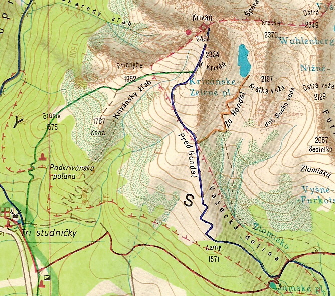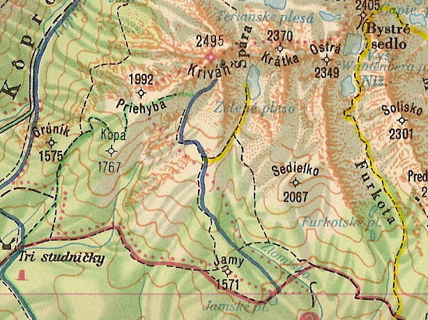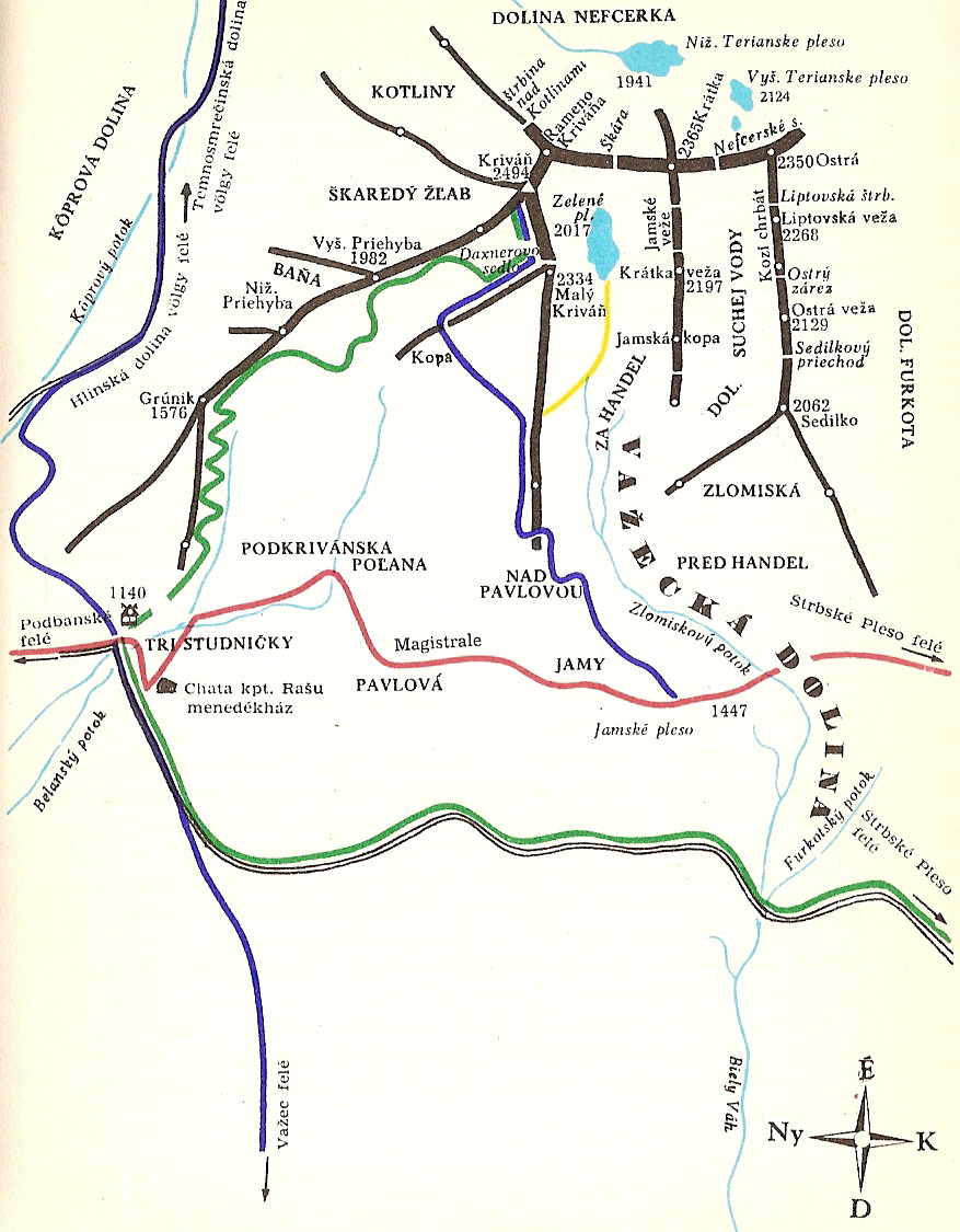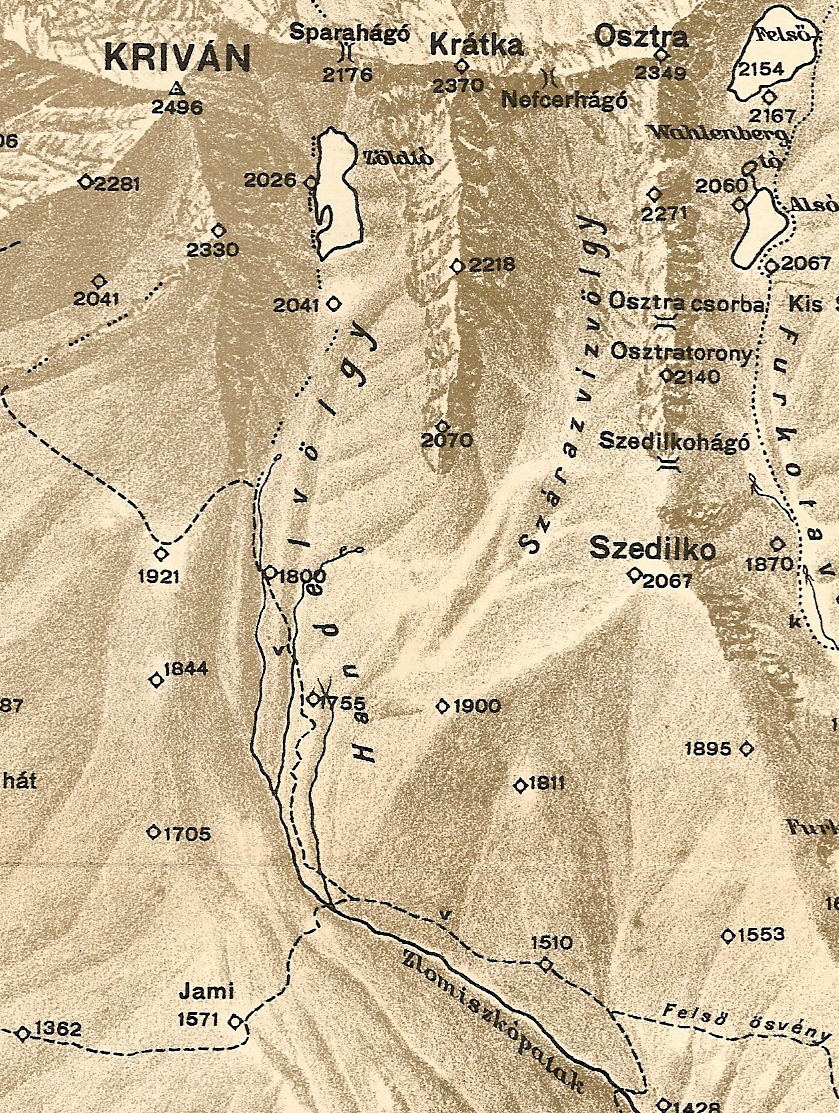 Ahogy az oldal rendszeres olvasói minden bizonnyal már találkoztak vele, az utóbbi időben néhány bejegyzésben a Tátra egykor jelzett, ma már azonban tiltott turistaútjainak sorsát, történelmét, megszűnésének idejét, okait igyekeztem körüljárni. A korábbi ilyen témájú bejegyzésekben szereplő valamennyi turistaút (a Vadorzó-hágóba, a Chałubiński-kapuba és a Liliom-hágóba vezető is) a Tátra főgerincén lévő hágók valamelyikébe vezetett. Ezeknek közös jellemzője, hogy napjainkban mindhárom hágó csak a lengyel oldalról érhető el jelzett turistaúton, a déli, szlovák oldalról oda vezető utakat az 1970-es évek környékén lezárták a turisták előtt. Az előző három hágótól eltérően most egy teljesen szlovák oldalon lévő egykori útvonal múltját próbálom meg felderíteni, ez pedig nem más, mint a Kriváni-Zöld-tóhoz vezető egykori sárga jelzésű turistaút.