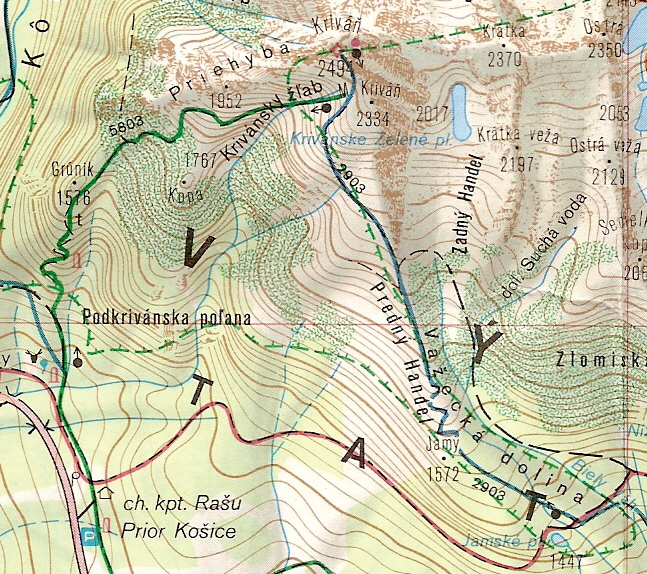 Figyelem: a Kriváni-Zöld-tóhoz napjainkban nem vezet jelzett turistaút, a Vázseci-völgy még hegyi vezetővel sem látogatható!