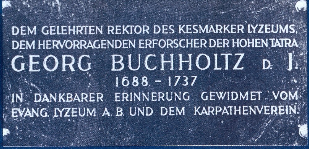 325 évvel ezelőtt, 1688. november 3-án született Késmárkon ifj. Buchholtz György (1688-1737) evangélikus lelkész, fizikus és természettudós, aki tudós emberként 1723-tól haláláig a késmárki líceum rektora volt. Tanítványaival több kirándulást is rendezett a Magas-Tátrába, 1726-ban például a Keleti-Zerge-résen keresztül átkelt a Vörös-tavi-völgyből a Fehér-tavi-völgybe. Részletesen foglalkozott a Tátra természeti viszonyaival, többek között a Zöld-tó fenekén keletkező zöld foltokkal, amely jelenséget a feltörő víz alatti forrásokkal magyarázta.