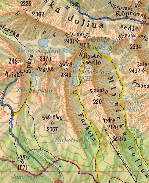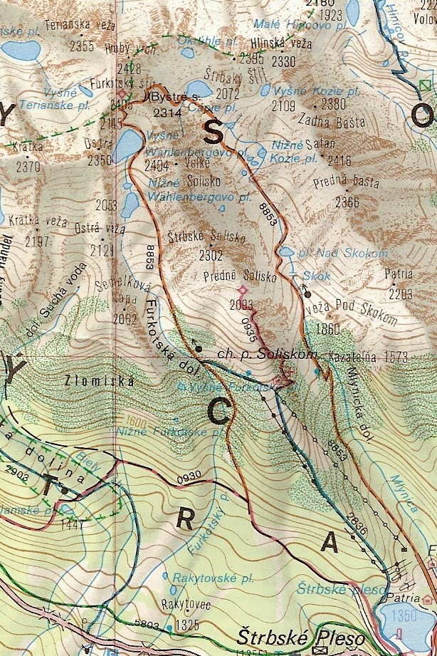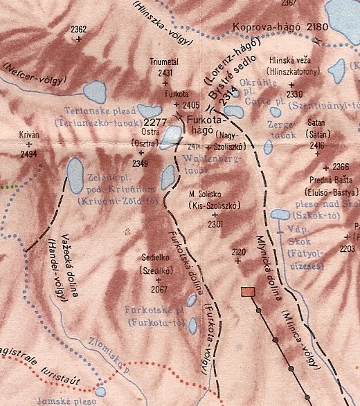 Itt kissé elnagyoltan van jelezve a Lorenz-hágó és a Furkota-csúcs közelében vezető turistaút. Alaposabban megnézve az látható rajta, mintha a sárga jelzés felvitt volna magára a csúcsra is.