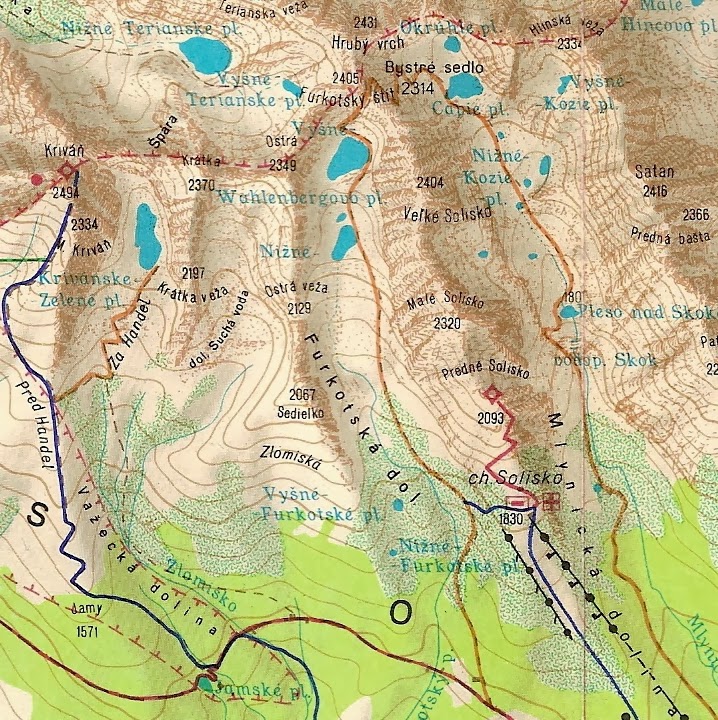 A kalauz a 204. oldalán foglalkozik a Furkota-völgy átjáróival, azonban sem a kalauzban, sem a mellékelt térképen nincs megemlítve, illetve megrajzolva, hogy a Furkota-csúcsra abban az időben bármiféle turistaút, ösvény vagy csapás vezetett volna. A térképmelléklet jelmagyarázata szerint viszont „csapás” kötötte össze a Felső-Wahlenberg-tavat és a Malompataki-völgyben található Szentiványi-tavat, mégpedig a Lorenz-hágó nyílásán keresztül.