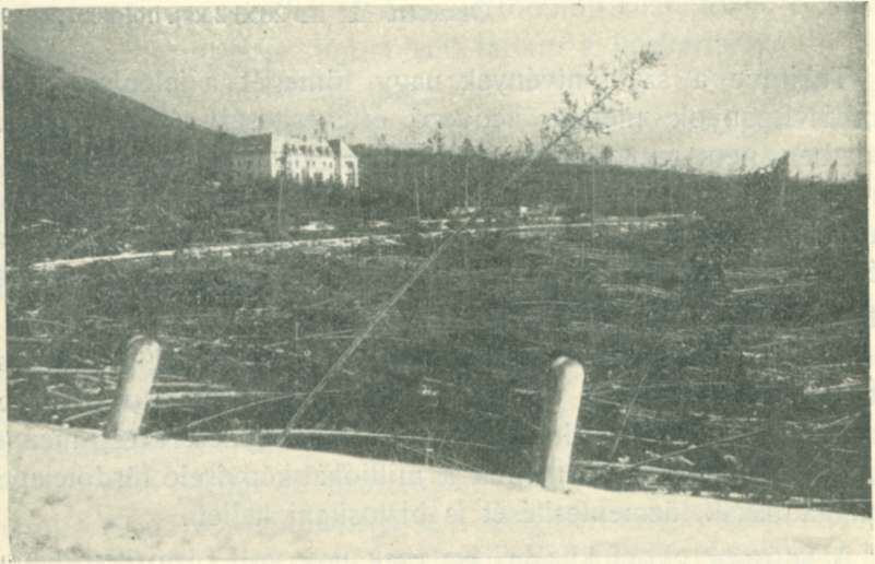 A nagy érdeklődés azonban a hadügyi kormányzat figyelmét is a tátrai széldöntvényekre irányította s az árverés után pár napra a m. kir. honvédelmi minisztérium erdőépitési igazgatósága az összes tátrai széldöntött fatömeget hadi czélokra lefoglalta. A hadügyi kormányzat eme intézkedése nagy fordulópontot jelent a tátrai erdők széldöntvényeinek kitermelésében, mert most már ugy a fa, mint a cserkéreg gyors és intenzív kitermelésének biztosítása mellett remélni lehet, hogy a tátrai erdők felújítása is rövid idő múlva kezdetét veheti.