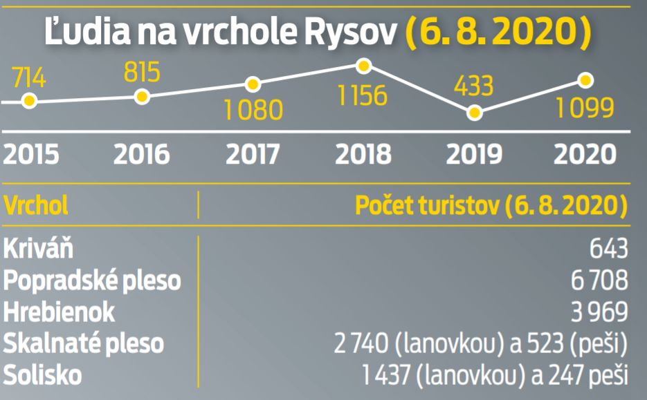 A Magas-Tátra látogatói a közösségi portálokon azt állítják, hogy a zsúfoltak a hegyek ezen a nyáron, és ezt legtöbbször dokumentumokkal és videókkal dokumentálják. „Leállítottuk a menedékházhoz történő áruszállítását, mert a rendelkezésünkre álló készletek elegendőnek tűnnek ahhoz a forgalomhoz, amely ebben az évben még várható” – mondta Viktor Beránek, a Hunfalvy-völgyi menedékház (Chata pod Rysmi) bérlője. „A korábbi években nem volt elegendő teherhordónk, akkoriban néhány teherhordónak napi kétszer vagy háromszor is kellett fordulnia. Most három idénymunkást szabadságra küldtem mert nem tudok munkát biztosítani számukra, két dolgozóm pedig vasárnap a Tátra-csúcsra kirándult, mert nem volt mit csinálni”.
